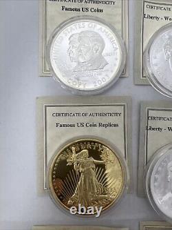 Le lot comprend des pièces en plaqué argent, en plaqué or et en matériaux plaqués, et ont été frappées entre 2000 et 2010 aux États-Unis. Ce lot commémoratif est parfait pour tout passionné de pièces de monnaie ou collectionneur cherchant à élargir leur collection.